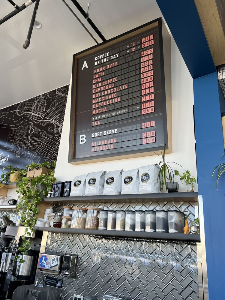 One unique aspect is the soft serve – a must-try especially during warm weather, paired perfectly with rich coffee experiences. The shop is environmentally conscious, utilizing compostable containers and promoting reusable tableware. Customers appreciate the friendly service and the inviting design, featuring large windows that enhance the ambiance.